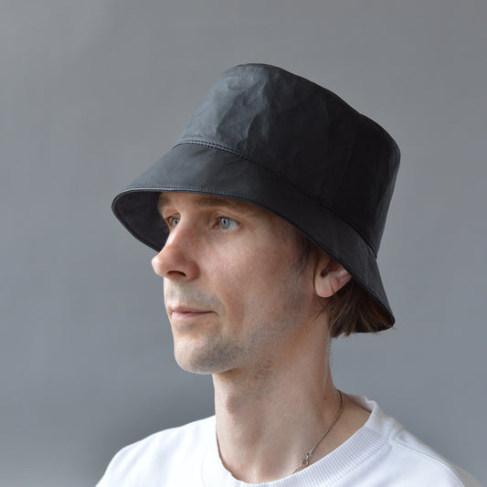 Minimal Buckets Hats designed and individually crafted by Edward de Lacy. Available in luxury leathers, Selvedge Denim & recycled fabrics.