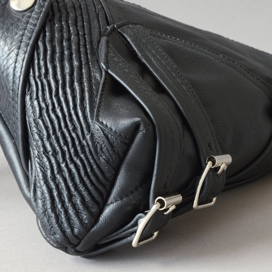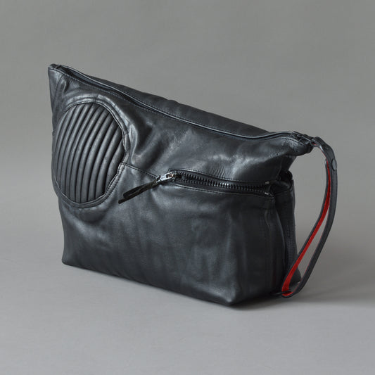 Reconstructed is a small capsule collection handcrafted by Edward de Lacy. The collection has a strong focus on reuse and recycling. All bags are created from second hand leather motorcycle apparel. Each piece is deconstructed then reimagined as unique one of a kind designs.