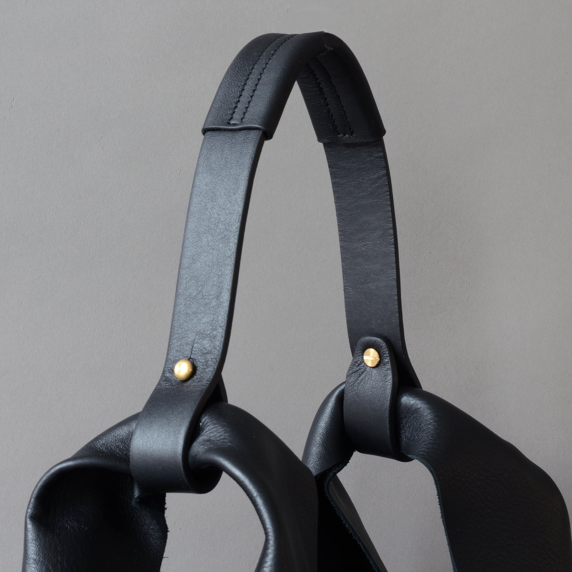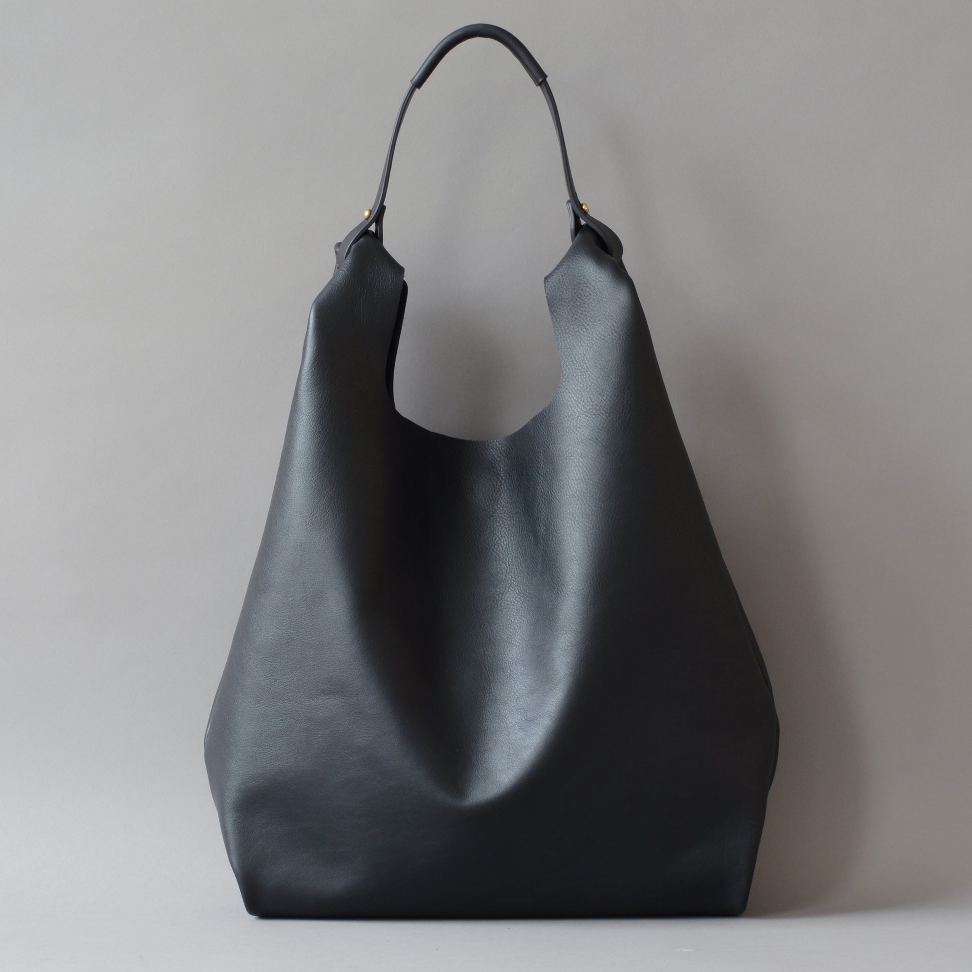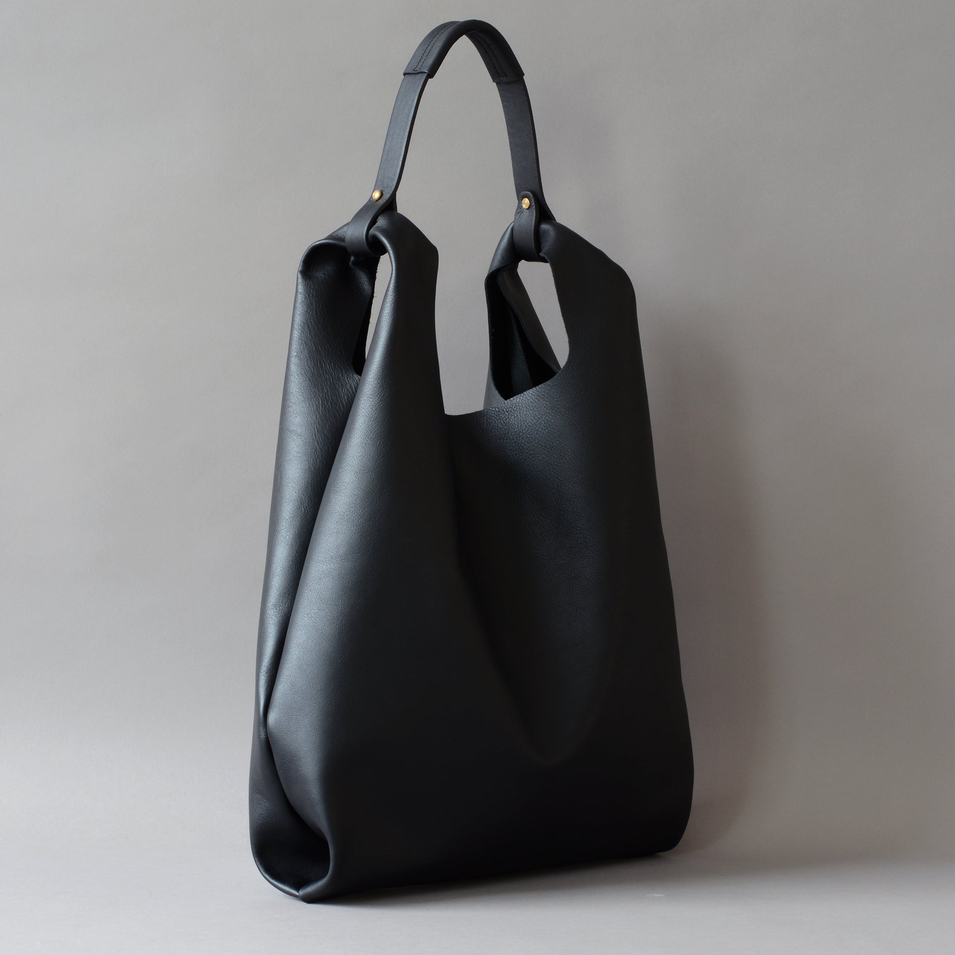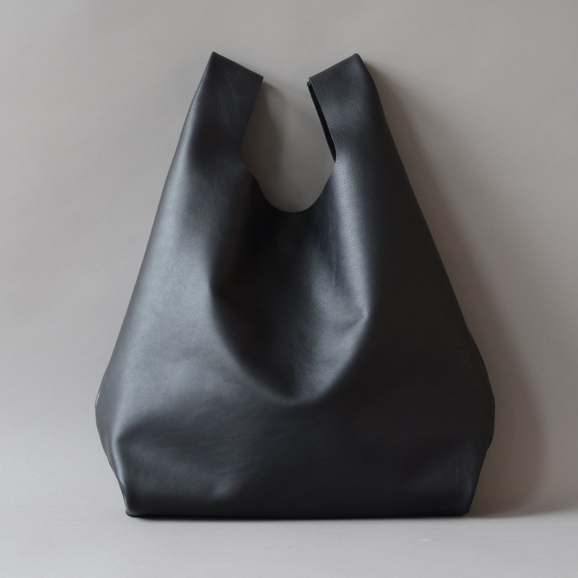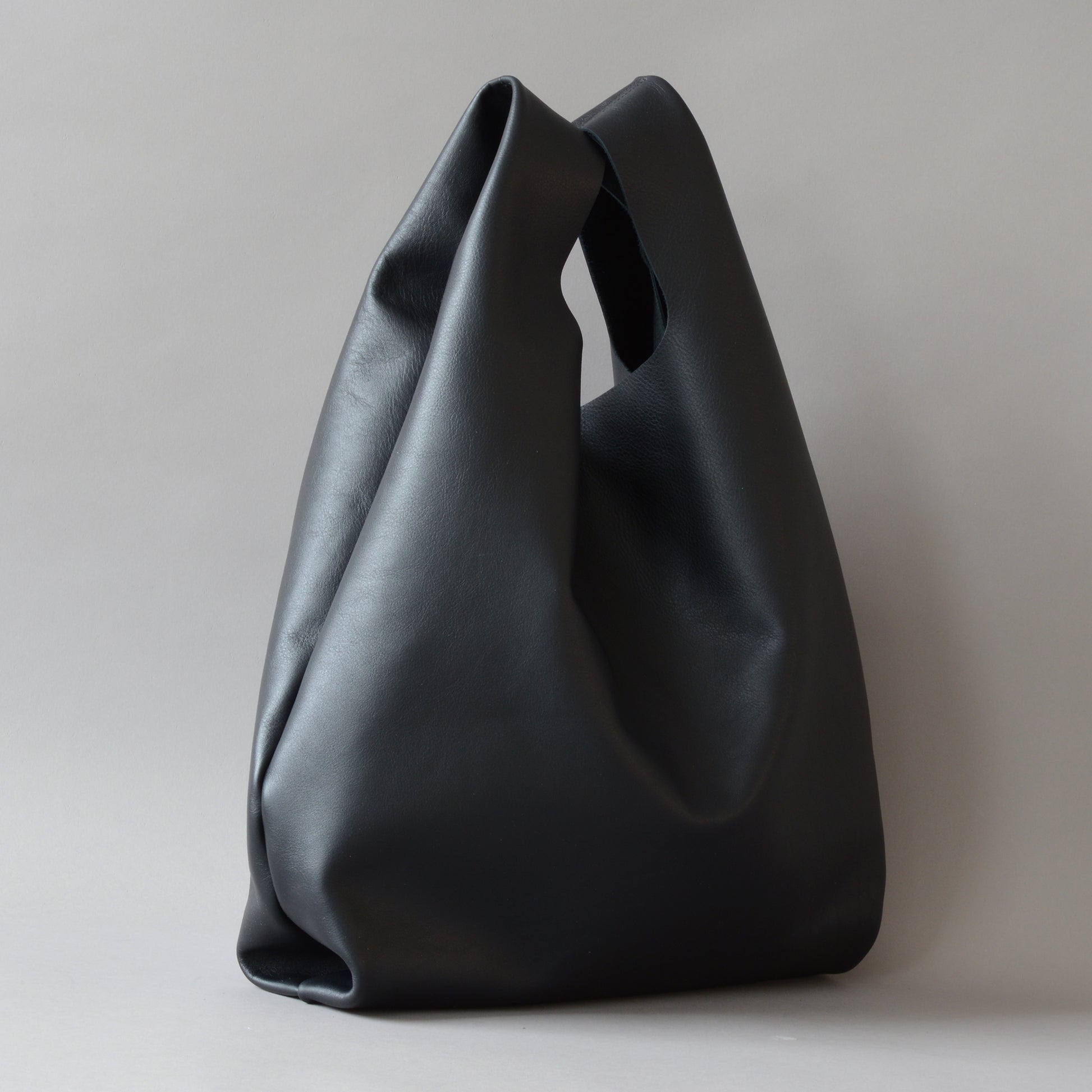 Black leather shopper bag designed and handcrafted by Edward de Lacy.