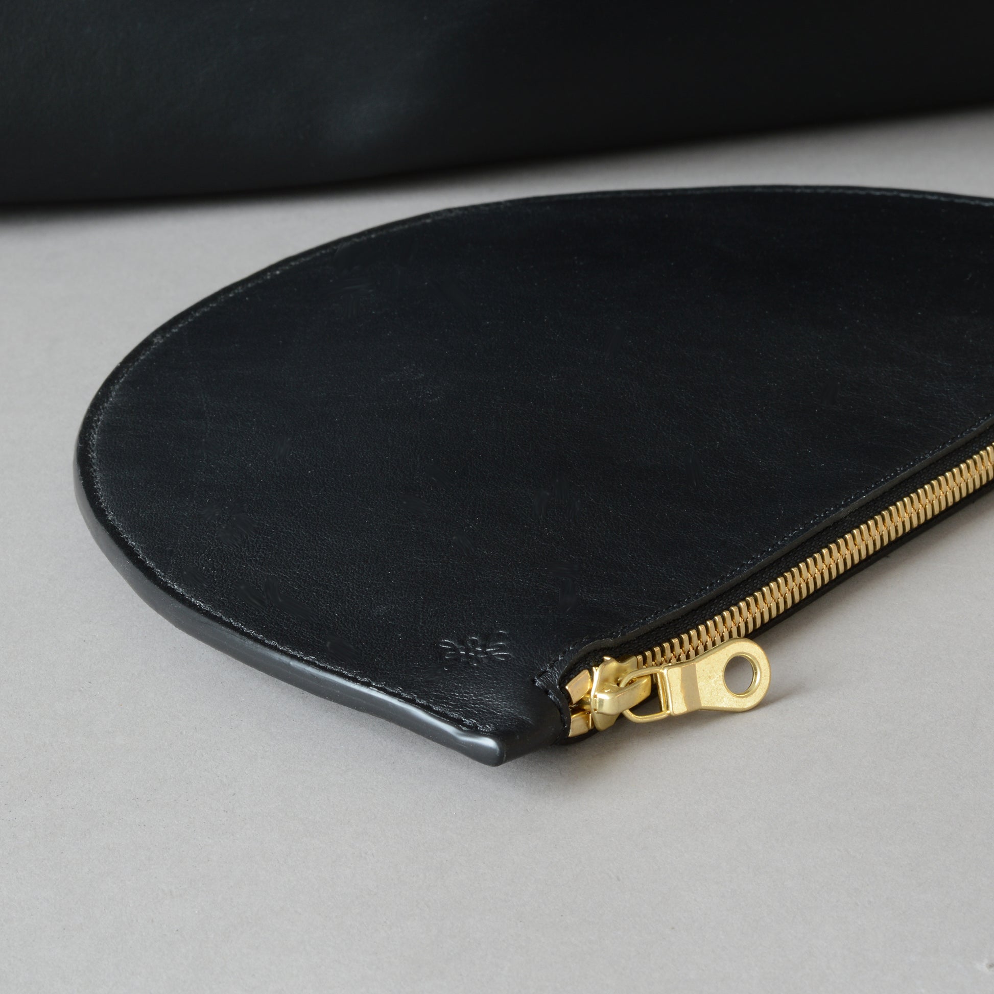 • Detachable shoulder strap in fine grain black leather with hand finished edges in matt black Italian edge paint.