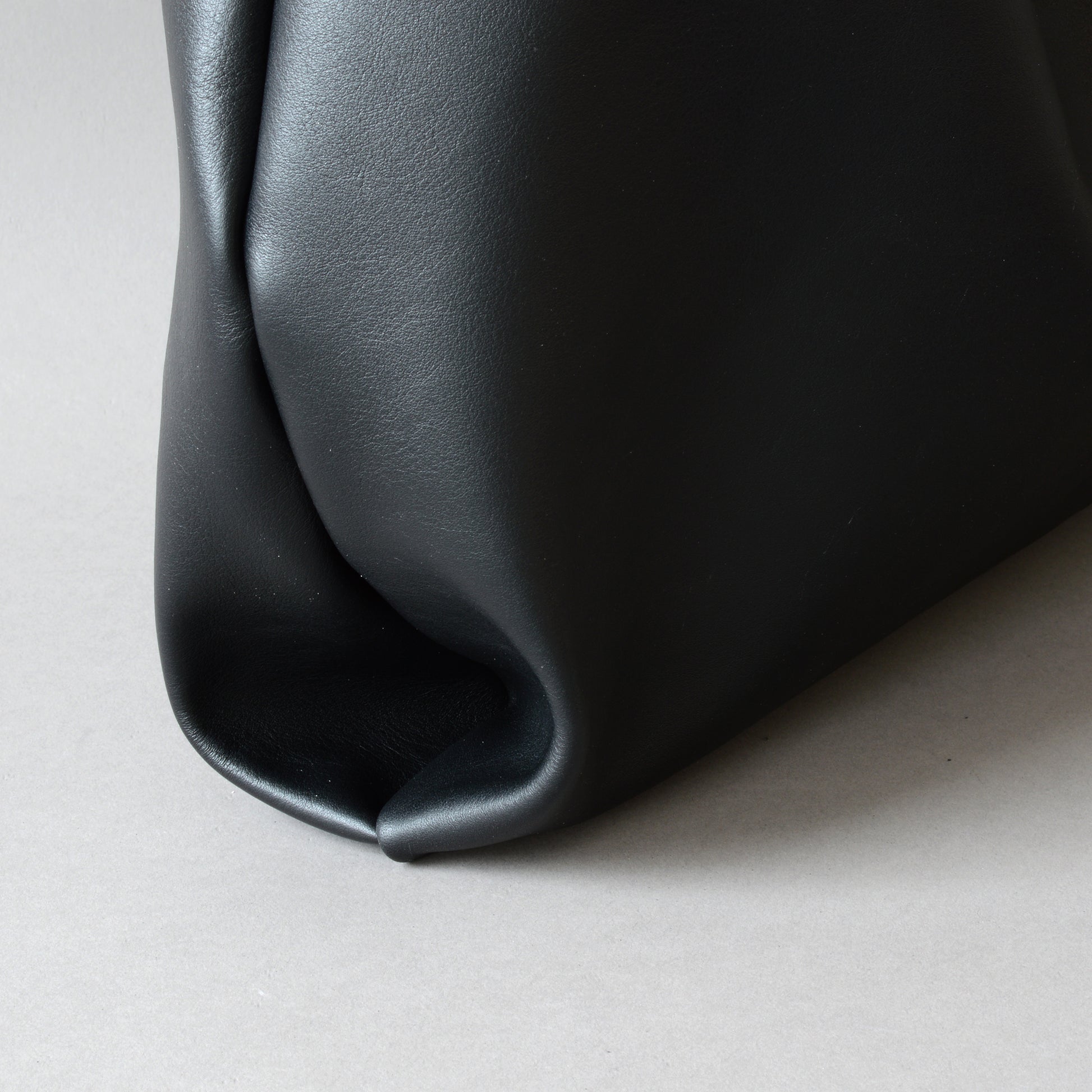 • Fine grain black leather with a semi sheen and natural break, from Italy.