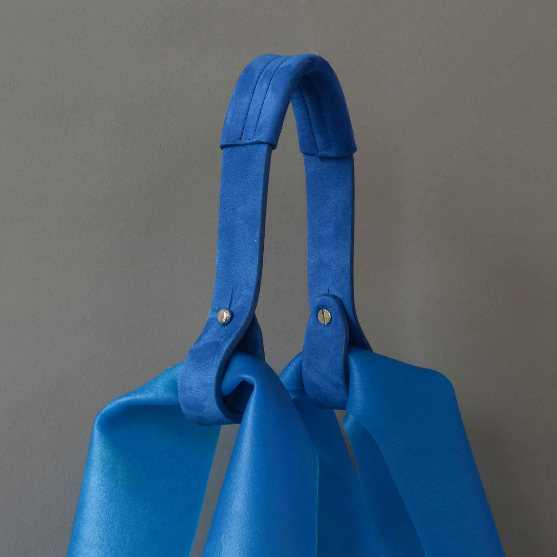 Blue leather shopper bag. Designed & crafted by Edward de Lacy.