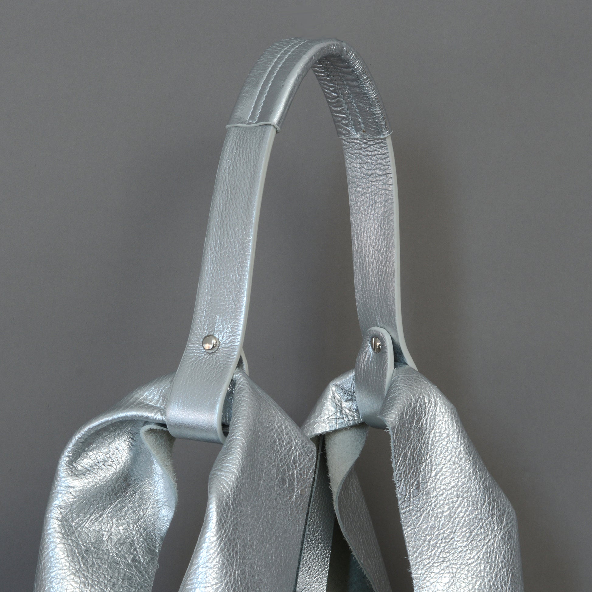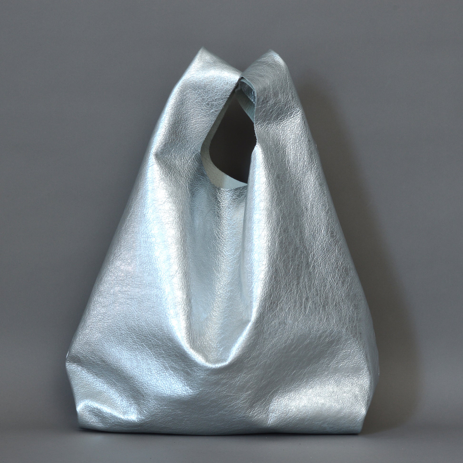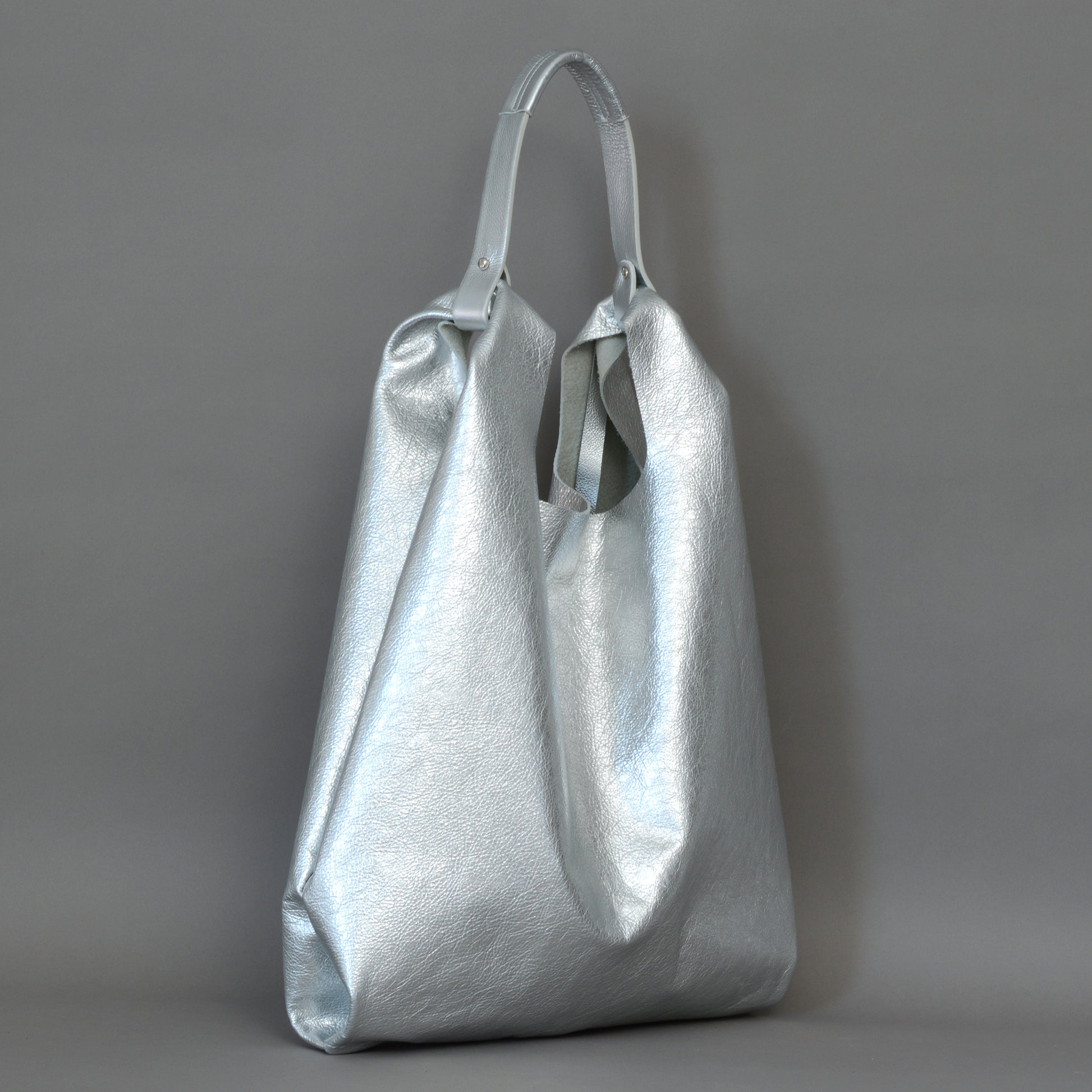 Silver leather shopper bag. Designed & crafted by Edward de Lacy.