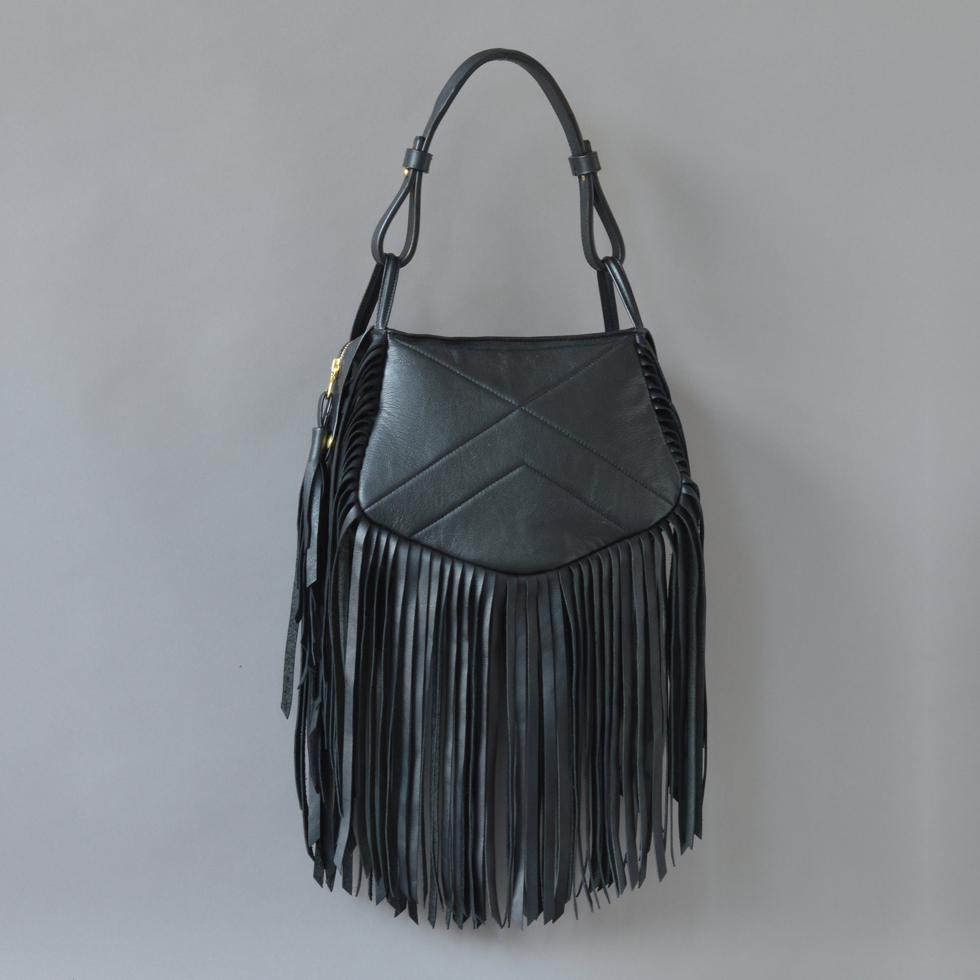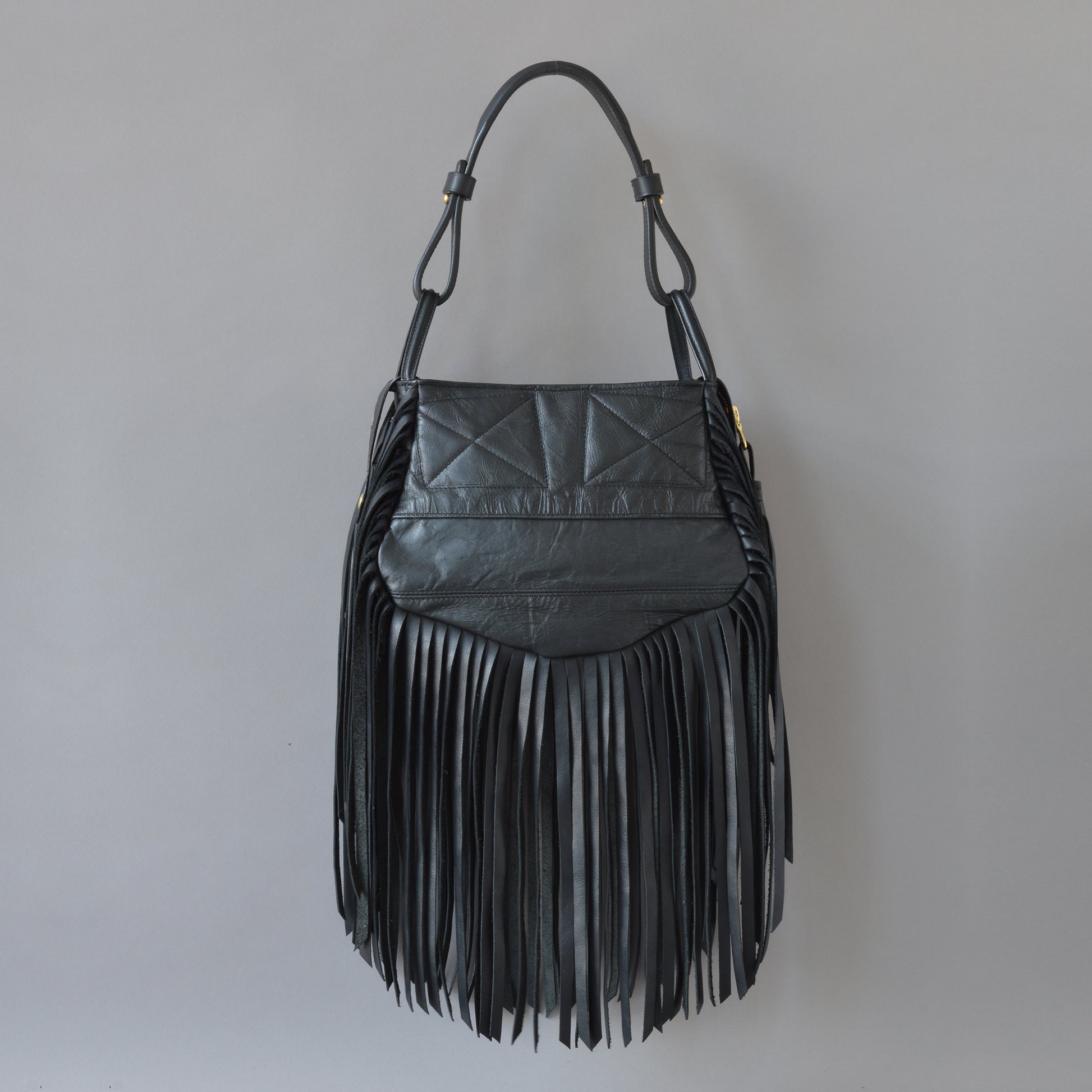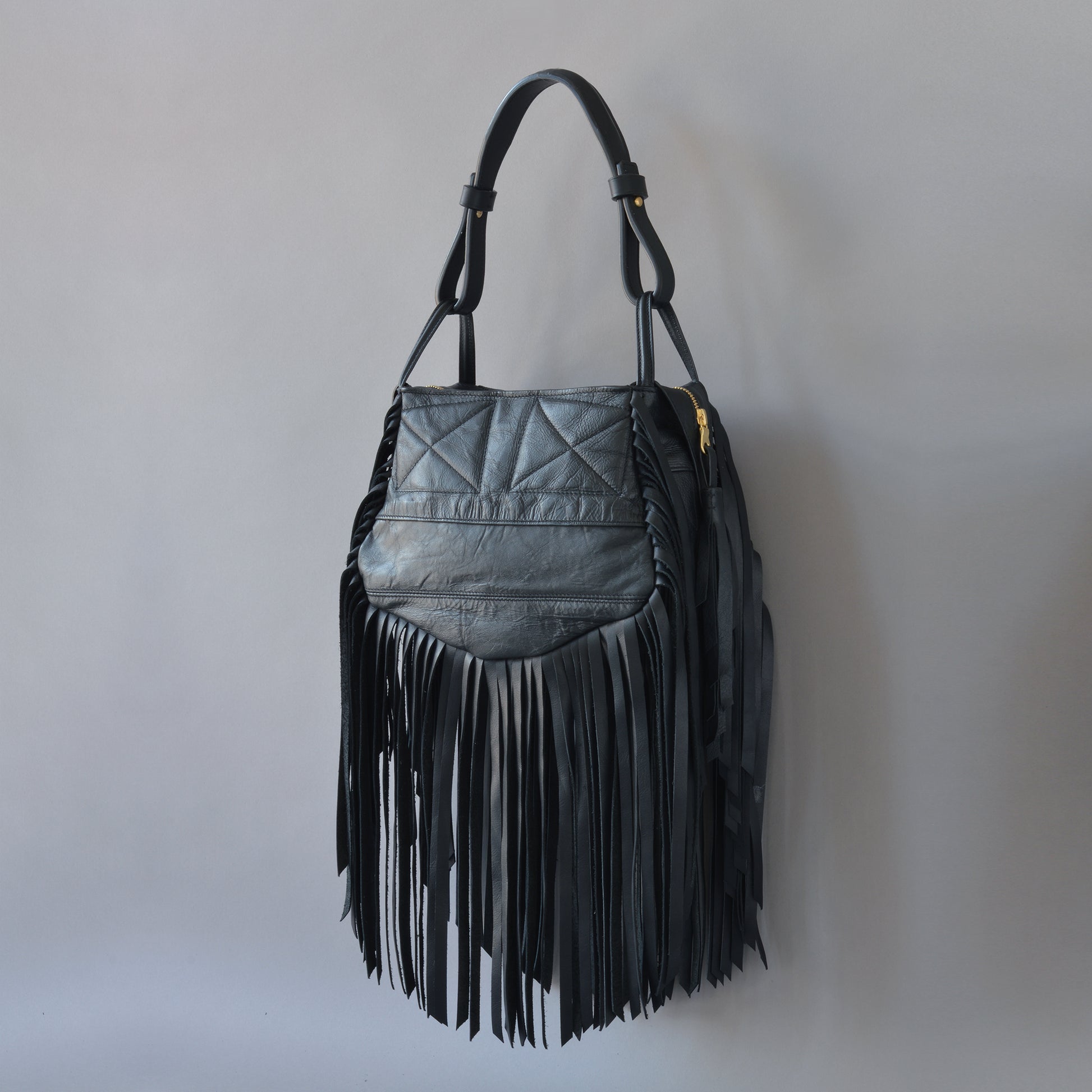 - Features black leather from pre loved motor cycle jackets and in house remnants.