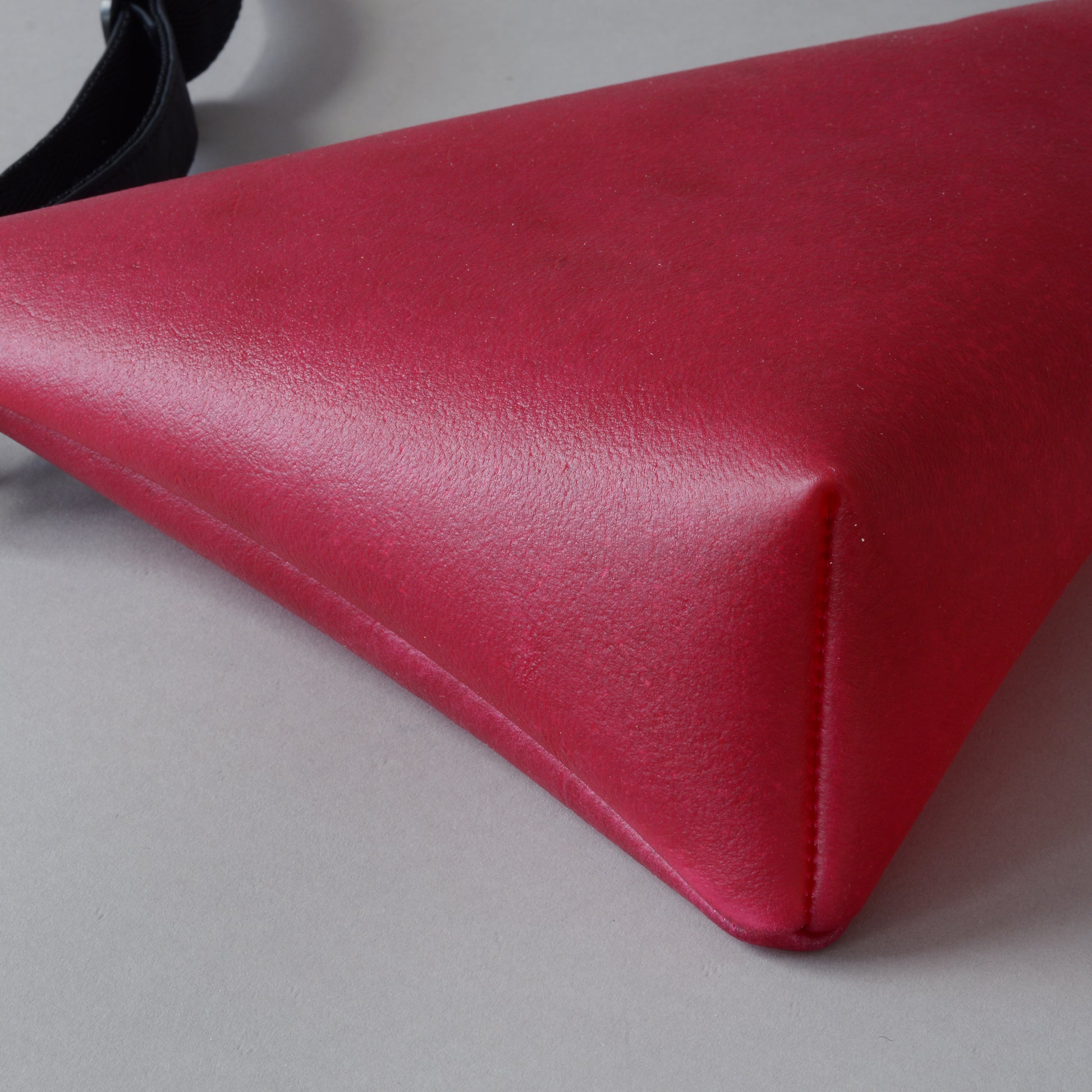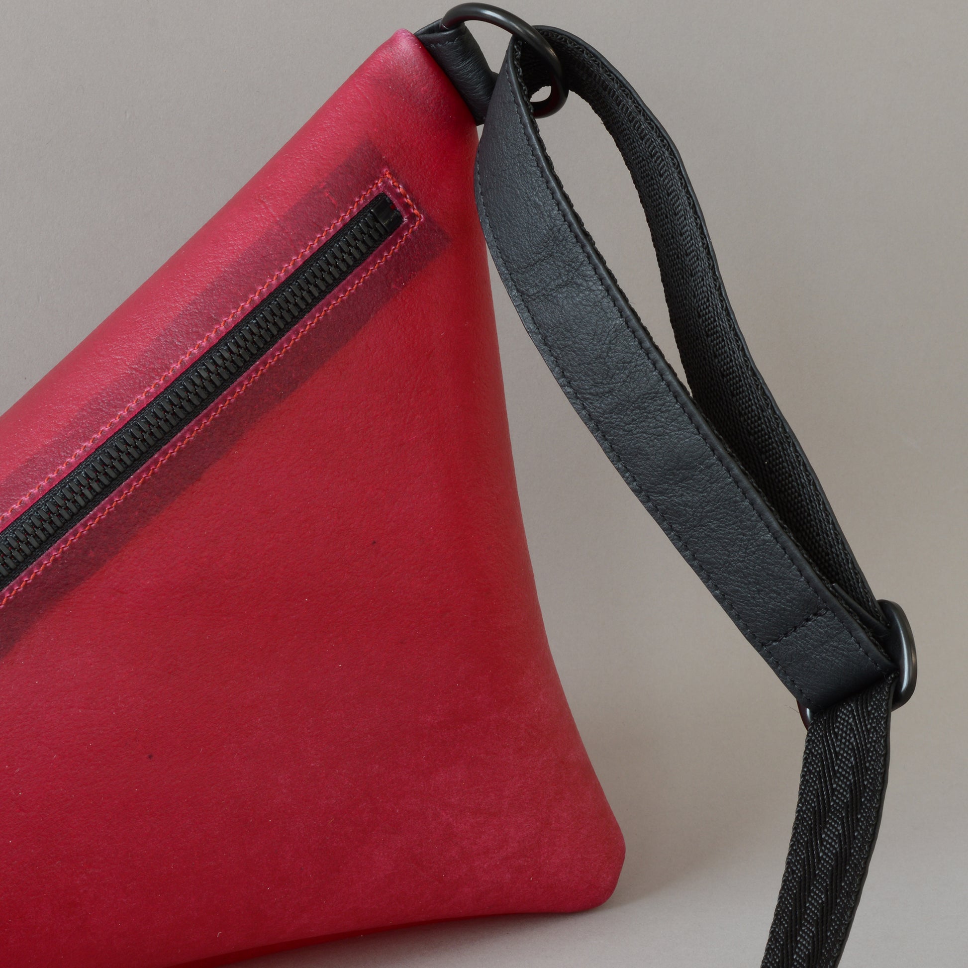 Red leather sling bag designed and handcrafted by Edward de Lacy.