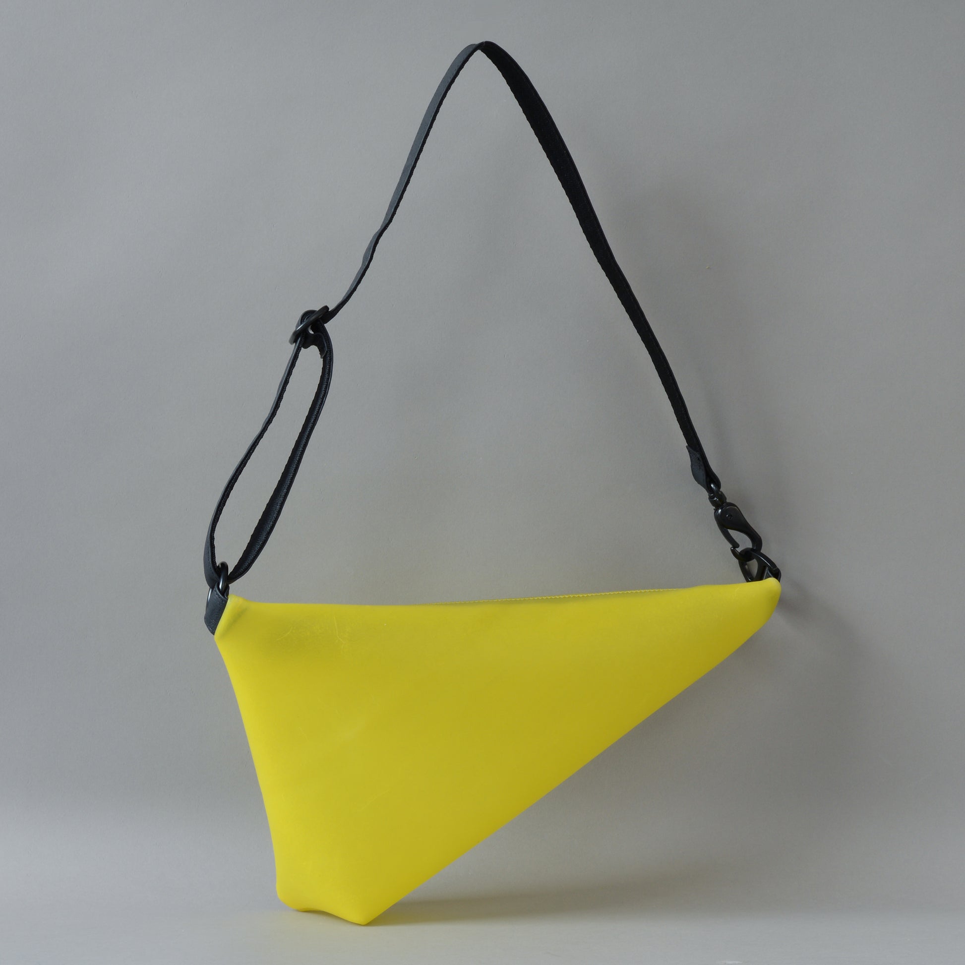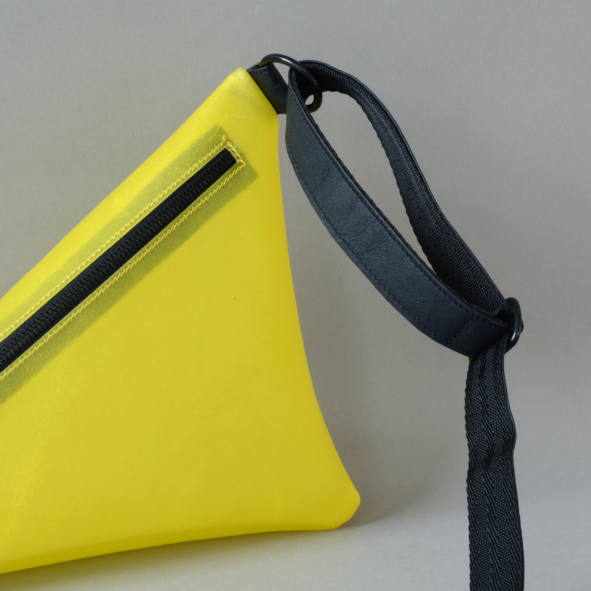 Yellow leather sling bag designed and handcrafted by Edward de Lacy.